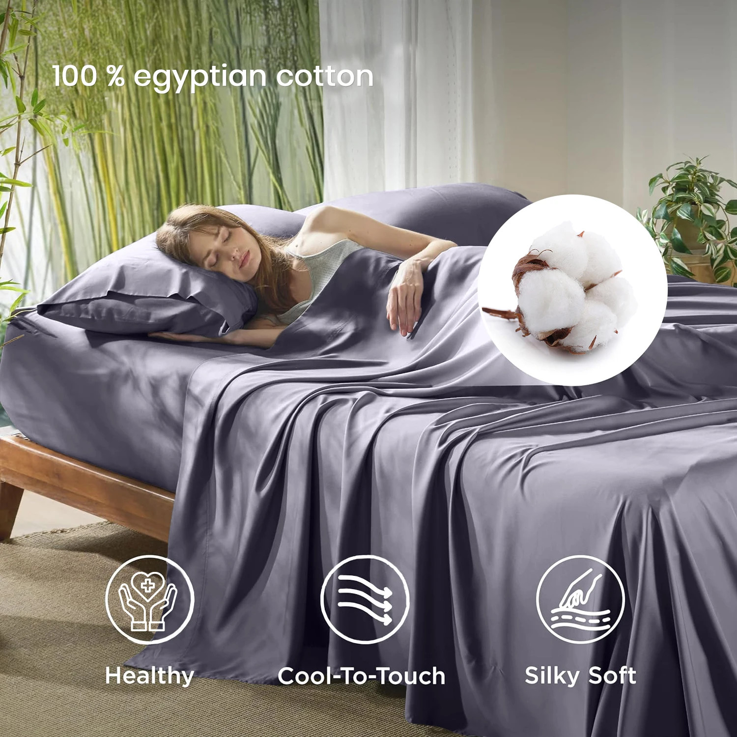 ✅ Naturally Breathable & Temperature Regulating: The unique structure of Egyptian cotton fibers allows for optimal airflow, wicking moisture away to keep you cool in summer and comfortably warm in winter.