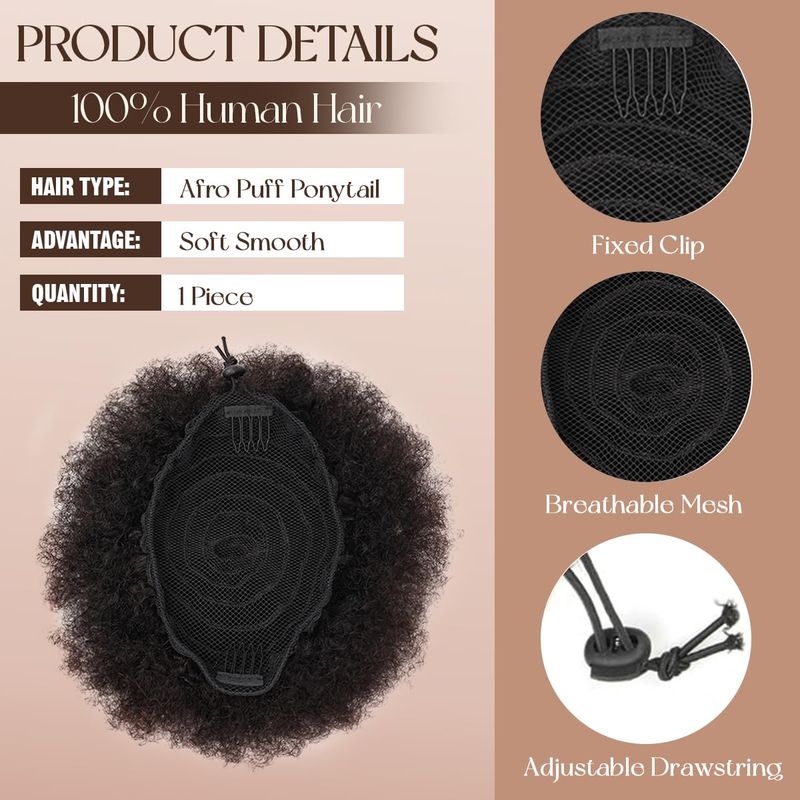 100% Human Hair Afro Kinky Puffs Drawstring Ponytail Extensions for Women 4# 99J 30 Kinky Curly Afro Puff Hair Accessories