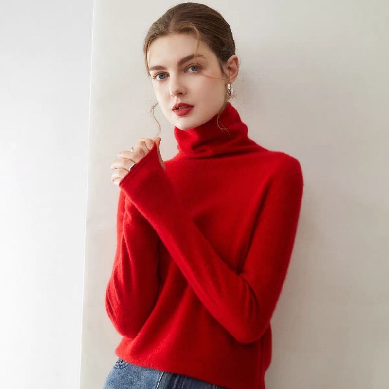 100%Merino Pure Wool Sweater Women's AutumnWinter Long Sleeve High Neck Pullover Warm High Quality Solid Color Basic Knit Jumper