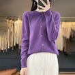 100% Merino Wool Sweater Women O-Neck Cardigan Basic Style Buttoned Knitwear Female Casual Autumn Winter Soft Tops