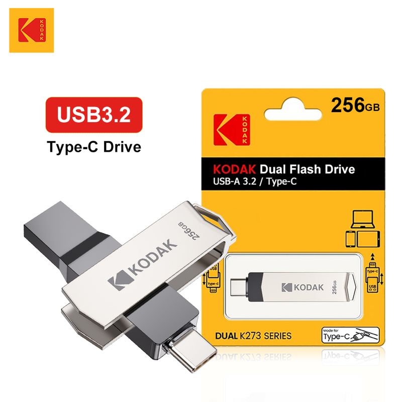 • High-Speed USB 3.2 :Experience rapid data transfer with the Kodak USB3.2 Type C Flash Drive's high-speed USB 3.2 interface, ensuring efficient file management and quick backups.