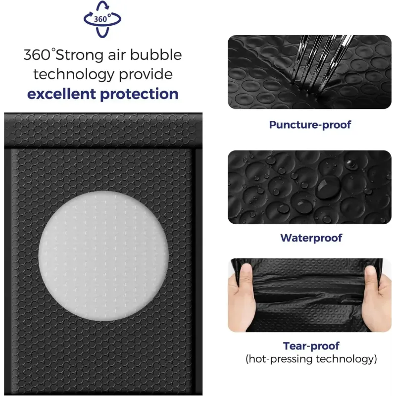 100 Pcs Bubble Mailers Bubble Padded Mailing Envelopes Mailer Poly for Packaging Shipping Bag Black Business Supplies