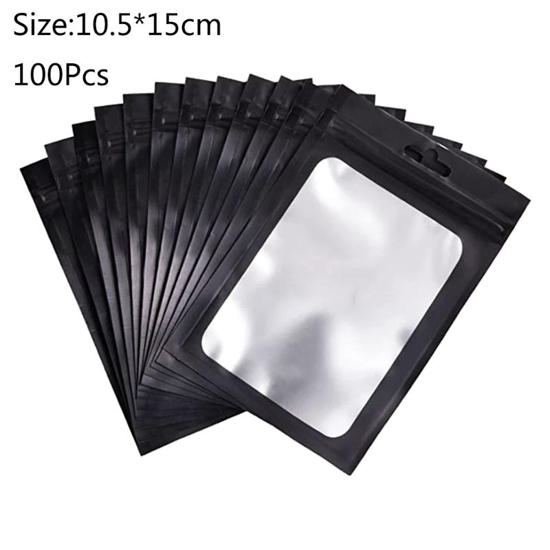 100 Pcs Flat Foil Lock Bags Bath Salt Cosmetic Bag One Side Clear Mini Thick Mylar Resealable Bags Smell Proof Ziplock for