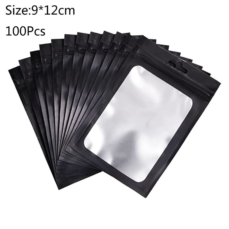 100 Pcs Flat Foil Lock Bags Bath Salt Cosmetic Bag One Side Clear Mini Thick Mylar Resealable Bags Smell Proof Ziplock for