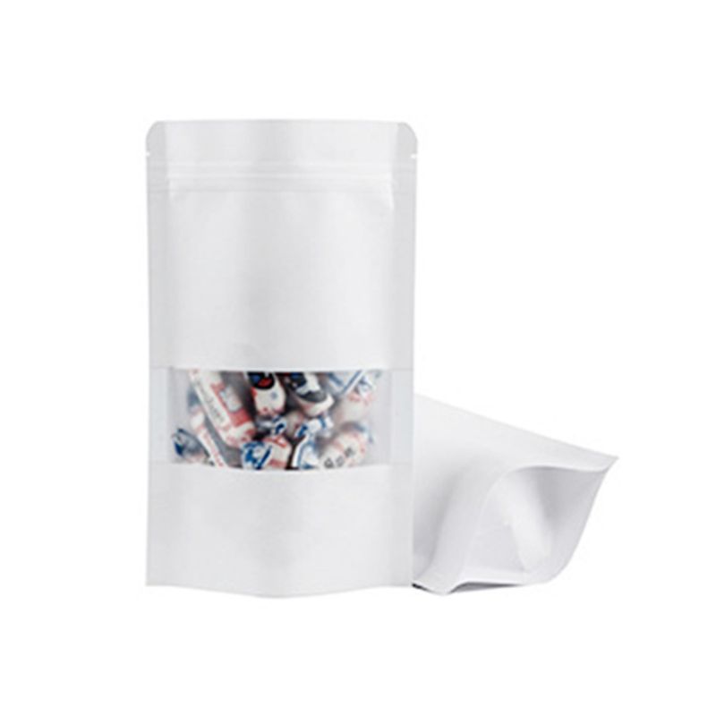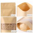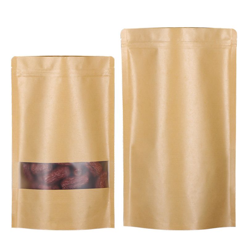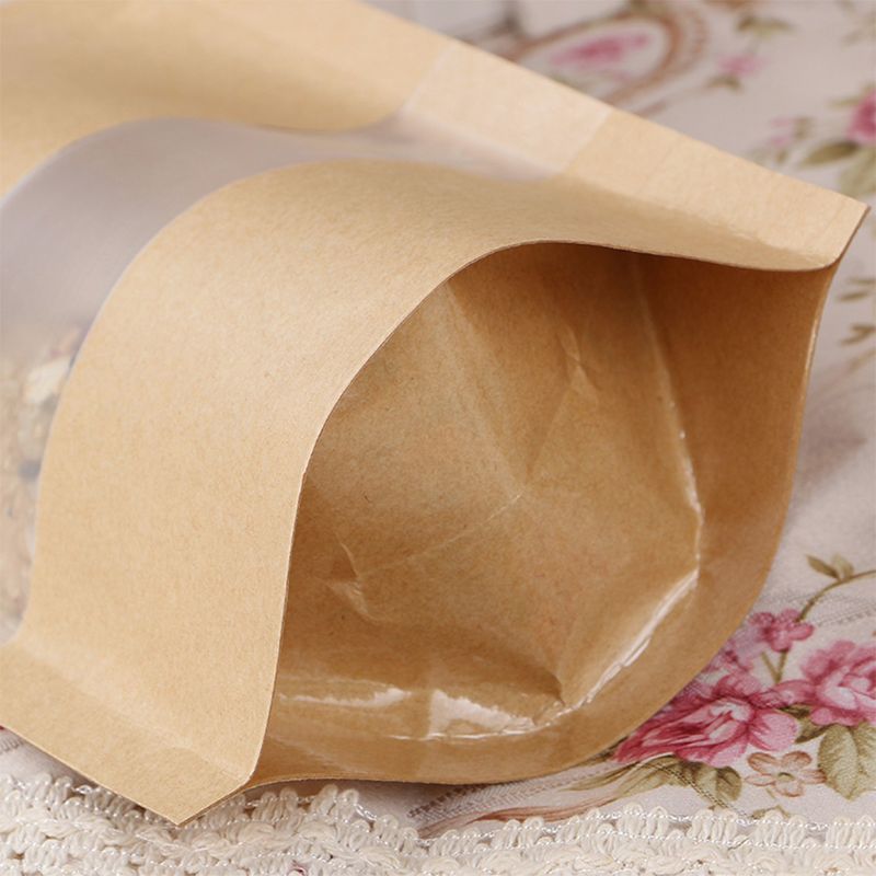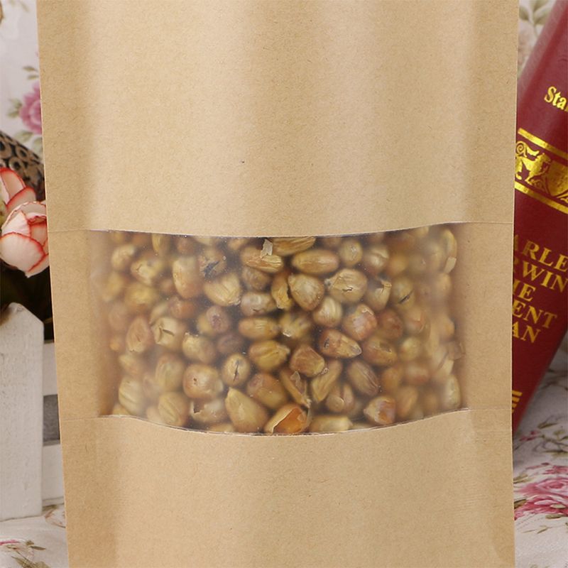 100 Pcs/Lot Stand Up Kraft Paper Pouches with Windows Snack Food Ziplock Bags Nuts Sealed Food Packaging Bags with Tear Notch