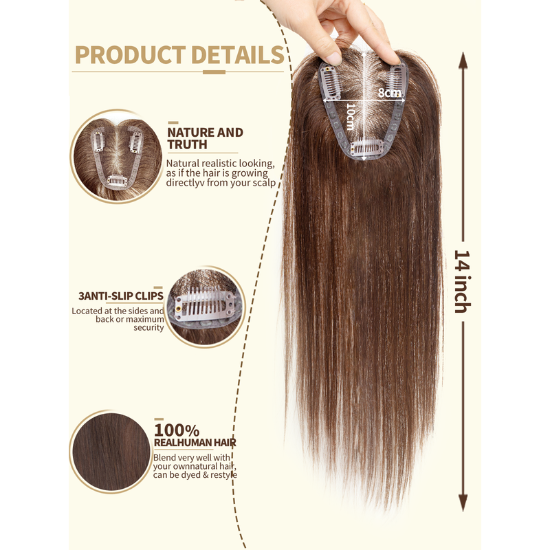 100% Real Human Hair Toppers for Women Clip in Real Hairpieces, Breathable Base for Covering Grayish Thinning Hair