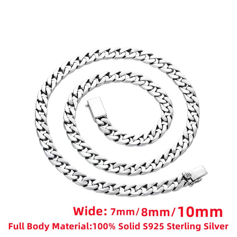 100% S925 Sterling Silver Necklace 7MM 8MM 10MM Punk 925 Silver Chains Original Certified Jewelry Gifts