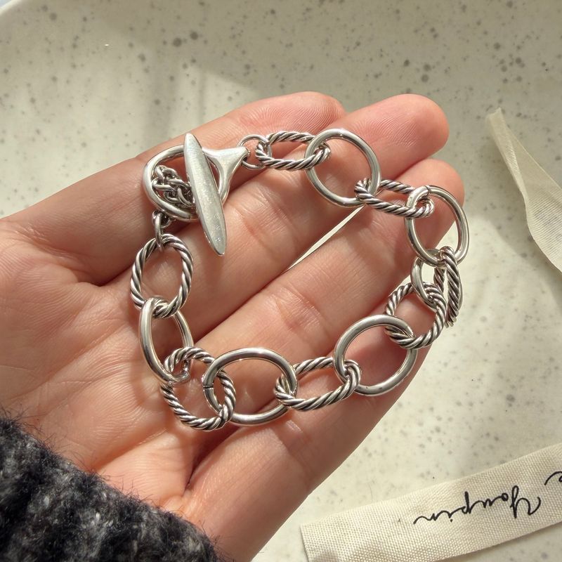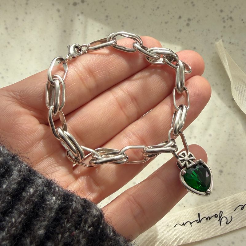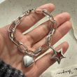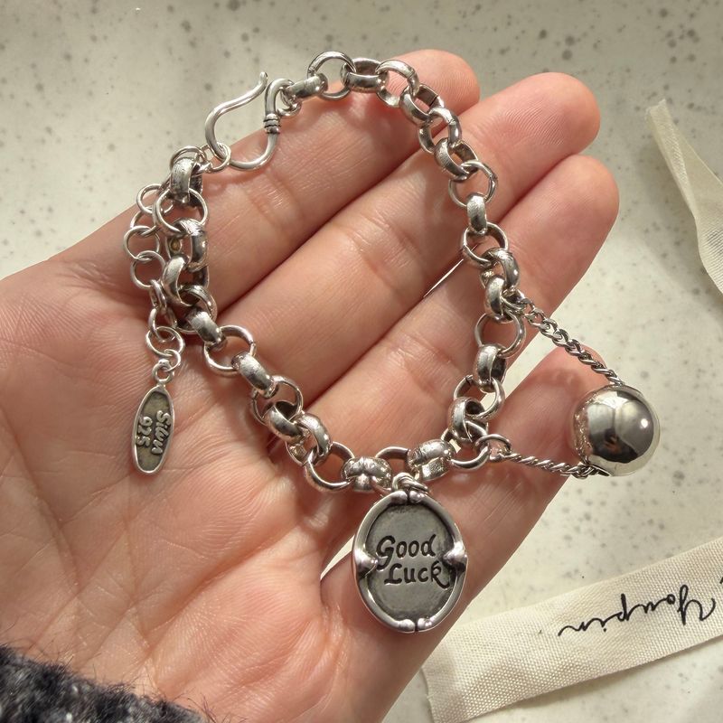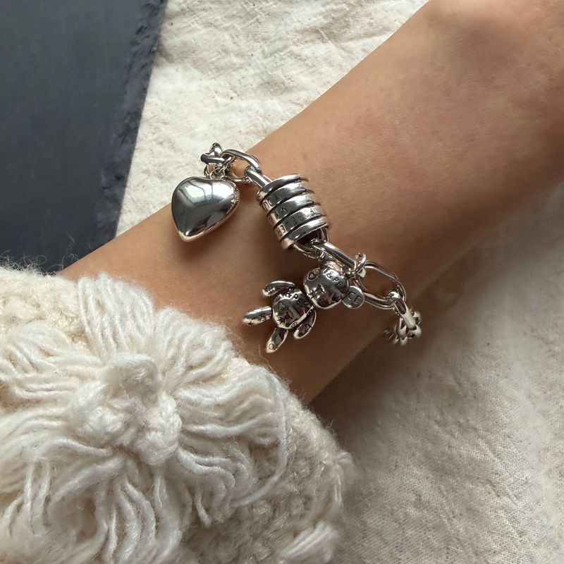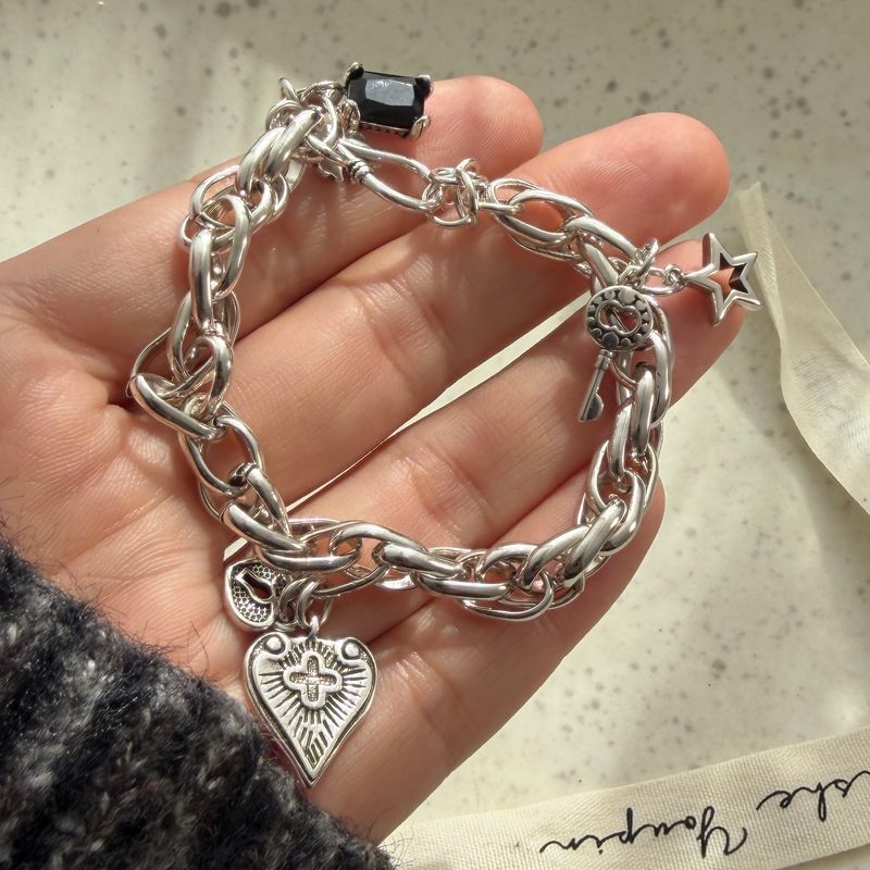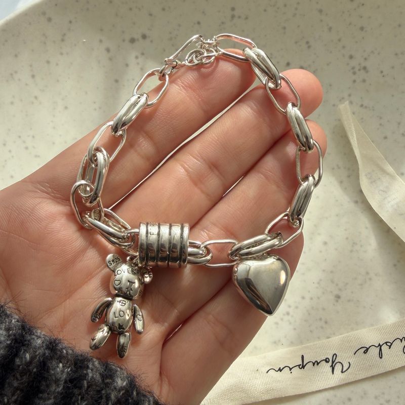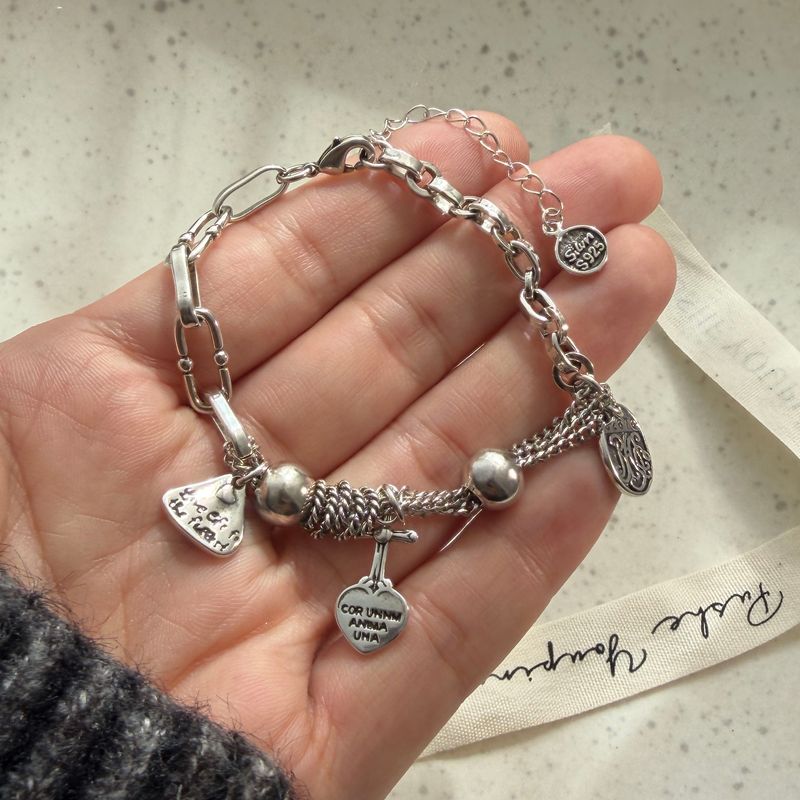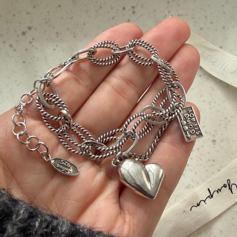100% Solid 925 Sterling Silver Metal Bracelet for Women Men Vintage Heart Letters Handmade Simple Birthday Gift