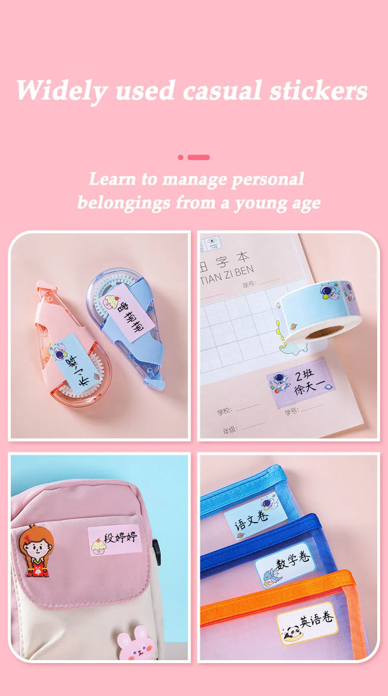 100/280Pcs cartoon name sticker non marking waterproof and tear resistant sticker name book classification signature sticker