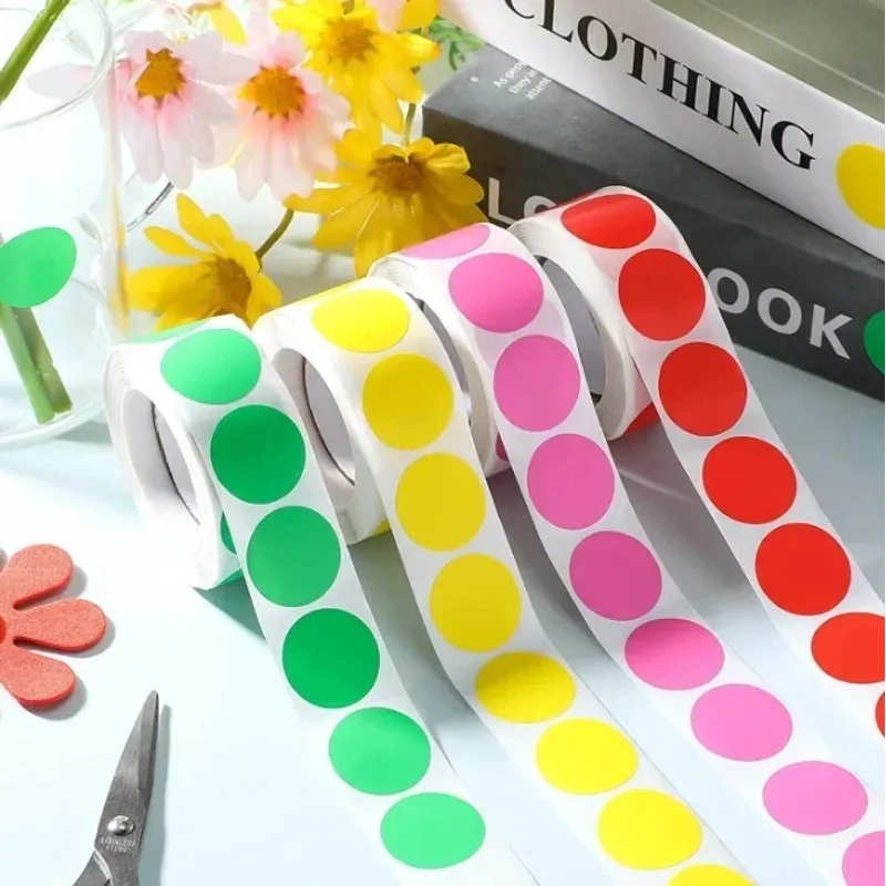 1000 PCS Color Dot Label Sticker Classification Mark Coated Paper Sticker Rolls Kawaii Stationery Aesthetic
