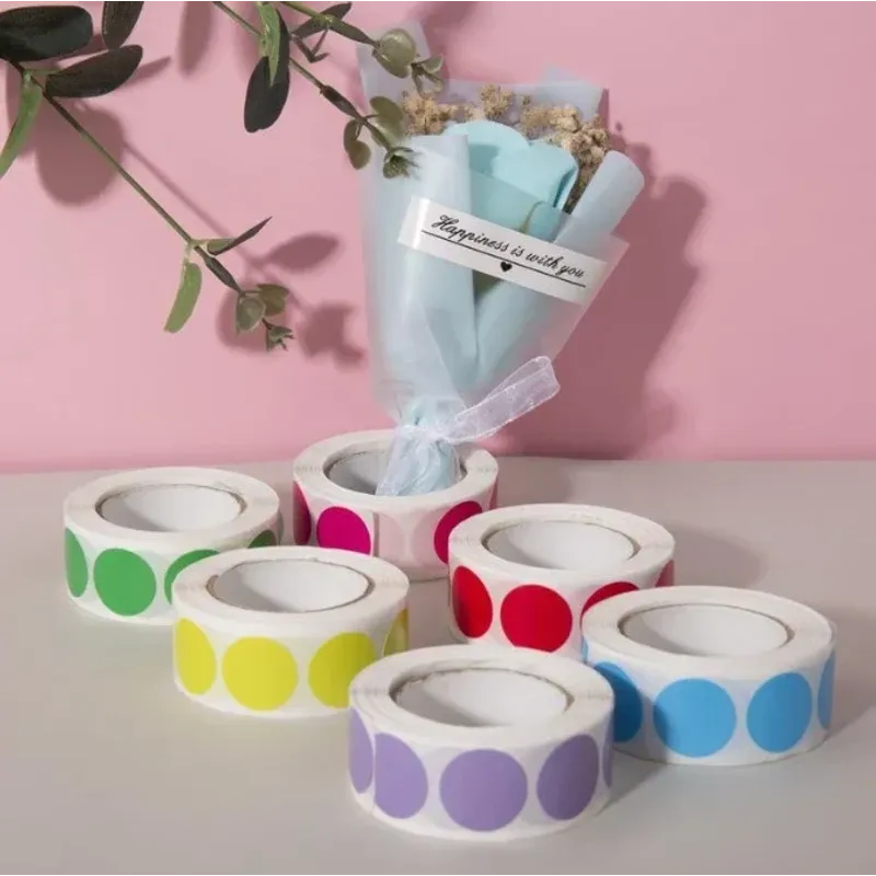 1000 PCS Color Dot Label Sticker Classification Mark Coated Paper Sticker Rolls Kawaii Stationery Aesthetic