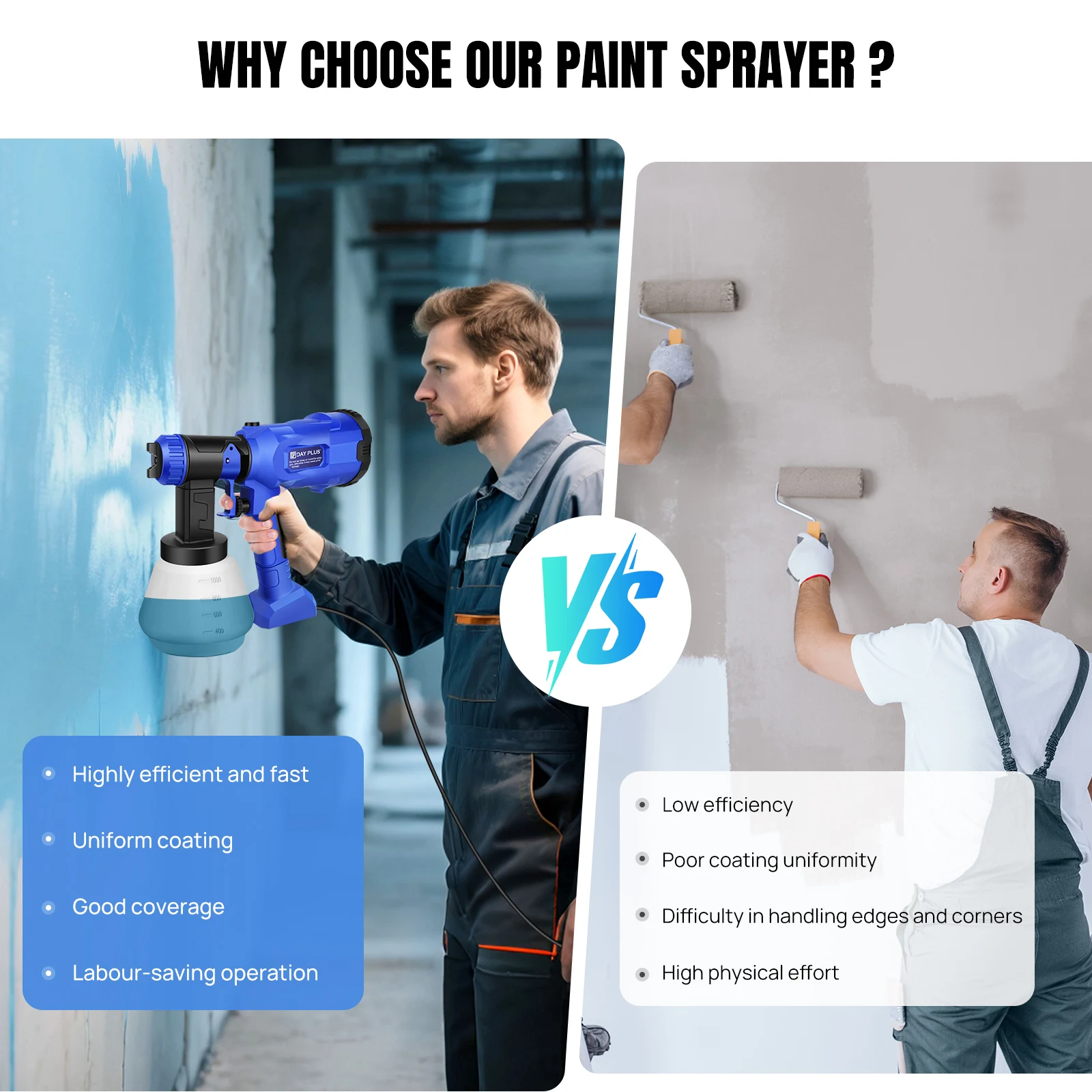 【1000ml Large Capacity】The container has a capacity of 1000ml. The wall spraying speed of the sprayer is 8 times faster than the paintbrush. It can be sprayed on a large area, and the coating effect is uniform and smooth, such as large-area projects such as walls and ceilings.