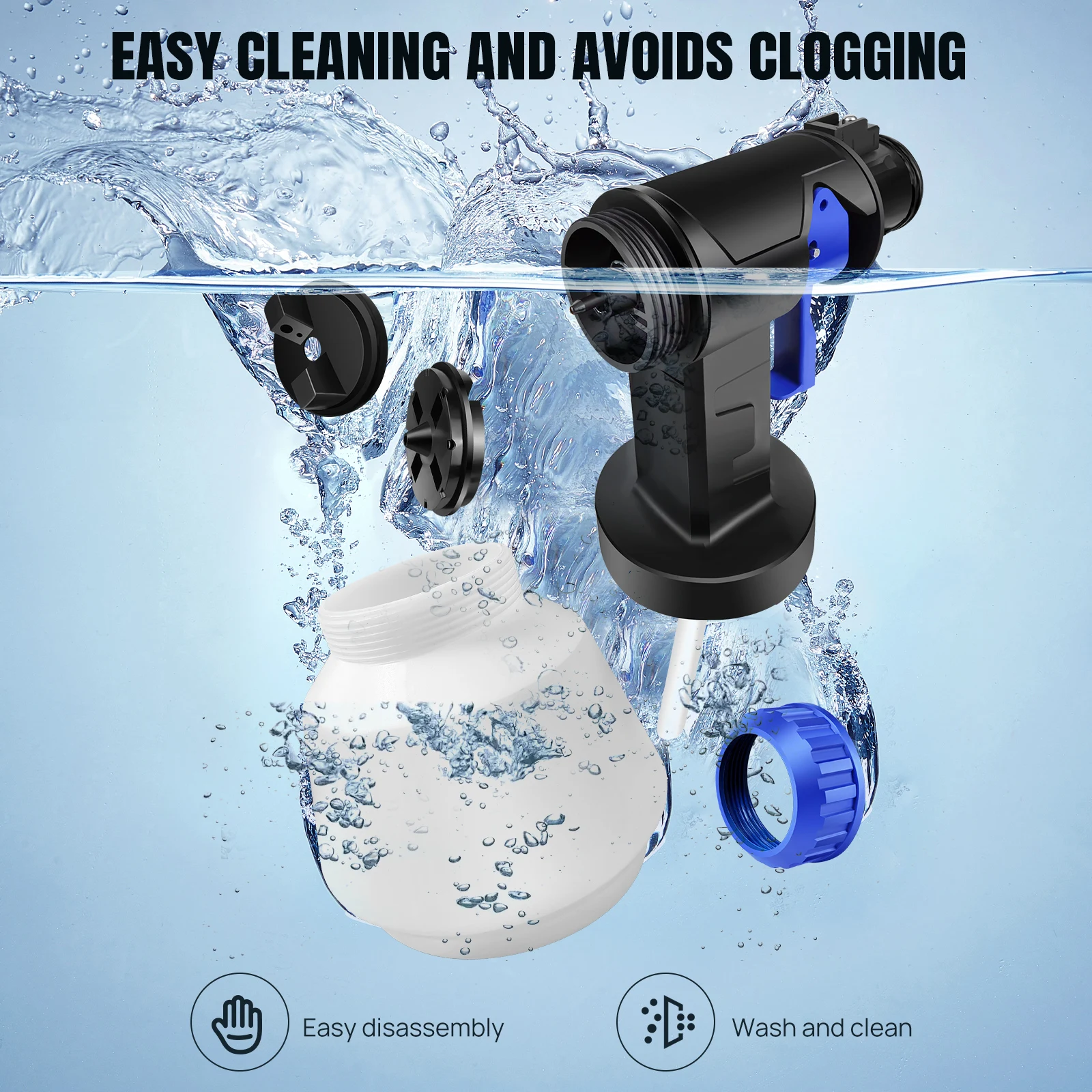 【Easy To Clean】One-button disassembly, nozzles can be quickly replaced, and the gun body can be quickly disassembled for cleaning. The nozzle can be easily cleaned with the cleaning needle and cleaning brush.