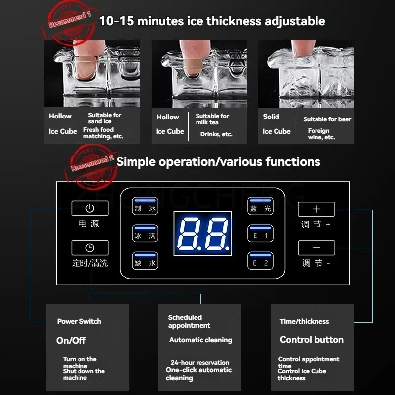 100kg /Day Ice Machine Electric Ice Making Machine Large Capacity Milk Tea Shop Ice Maker