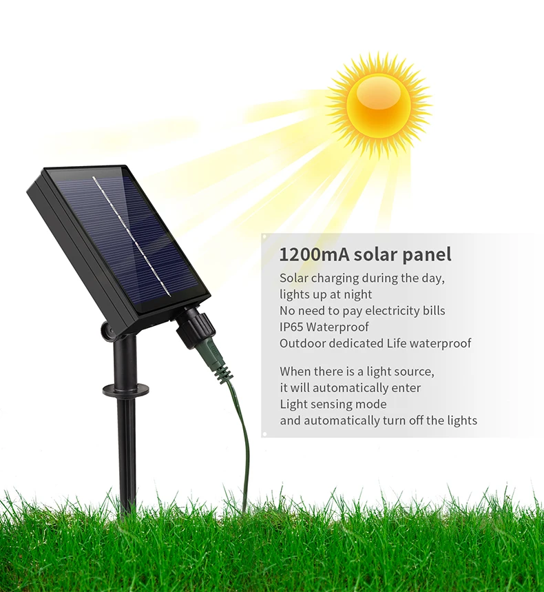 【Why Choose This Solar String Lights】: Longer Working Time, Super Bright 24V LED String Lights, IP65 Waterproof Performance, High Quality Flexible PC Wire, Quick Charging Technology.The new solar panel power is 4.5V/250mA, charging power is 3 times with other solar panel.