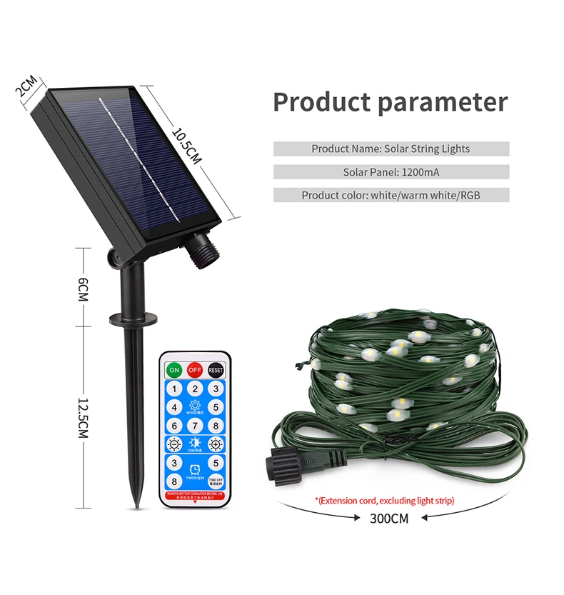 【Unique Ultrabright & Big LED】The outdoor solar fairy string lights with unique ultrabright and big LED Chips. Below features:1)Battery capacity - 3.7V 1200mAh;2)Quick rechargeable : 4-6hours will fully charged; 3)Weatherproof IP65 for indoor and outdoor use.