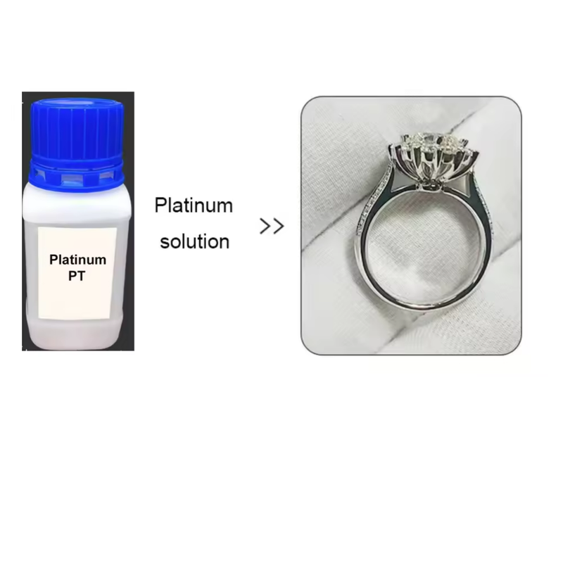 Function:Platinum electroplating water should be used together with electroplating machine + titanium mesh, after stainless steel base, plating 18K platinum is added to achieve silvery white and beautiful, wear-resistant and bright.
