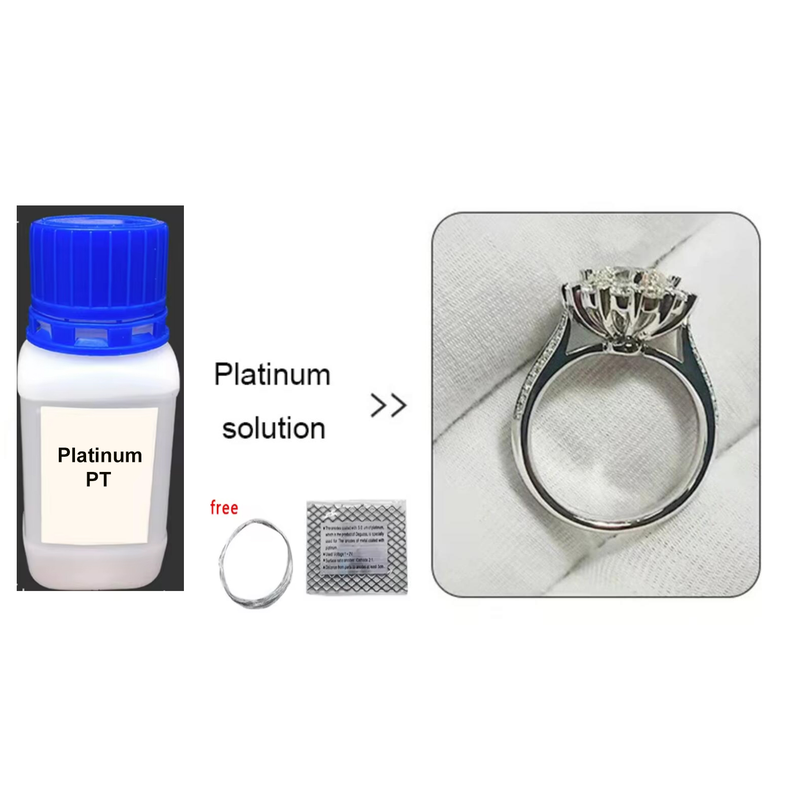 Function:Platinum electroplating water should be used together with electroplating machine + titanium mesh, after stainless steel base, plating 18K platinum is added to achieve silvery white and beautiful, wear-resistant and bright.