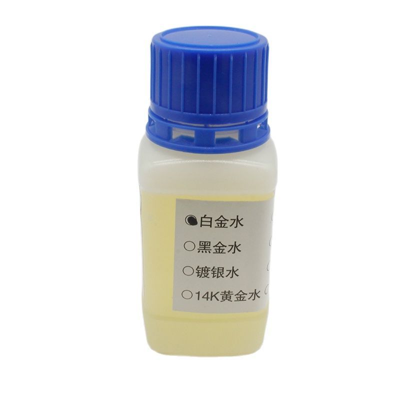 Function:Platinum electroplating water should be used together with electroplating machine + titanium mesh, after stainless steel base, plating 18K platinum is added to achieve silvery white and beautiful, wear-resistant and bright.