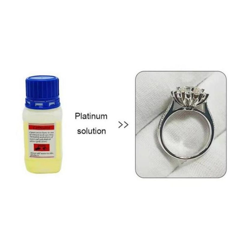 The electroplating liquid is used in conjunction with the electroplating machine to plate a layer of platinum or gold on the surface of the gold, silver and copper ornaments to protect the ornaments from oxidation. Mainly used for the electroplating of jewelry, watches, spectacle frames, etc. High hardness, good wear resistance, strong anti-tarnishing, thickness up to 1 micron, wide process range, simple operation.