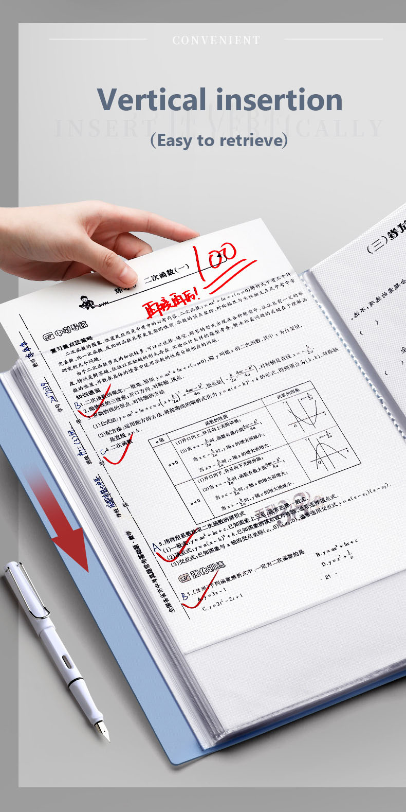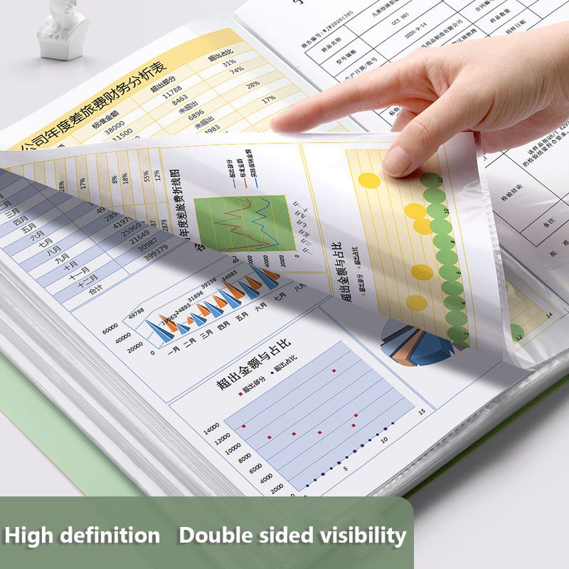 ✔Bring You Convenience: the folder with plastic sleeves provide a wide opening, so the paper is easy to slide in and out; All the binder sheet protectors have clear finish that bring you clear visual effect