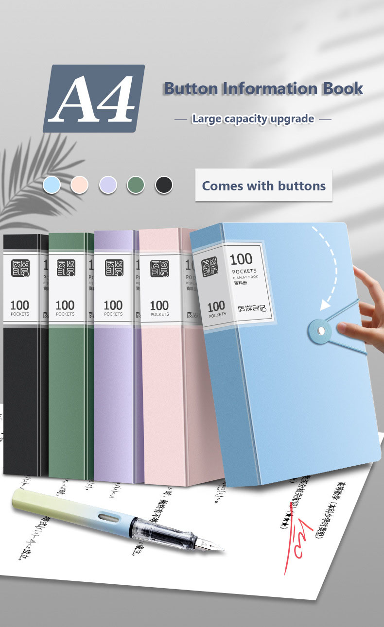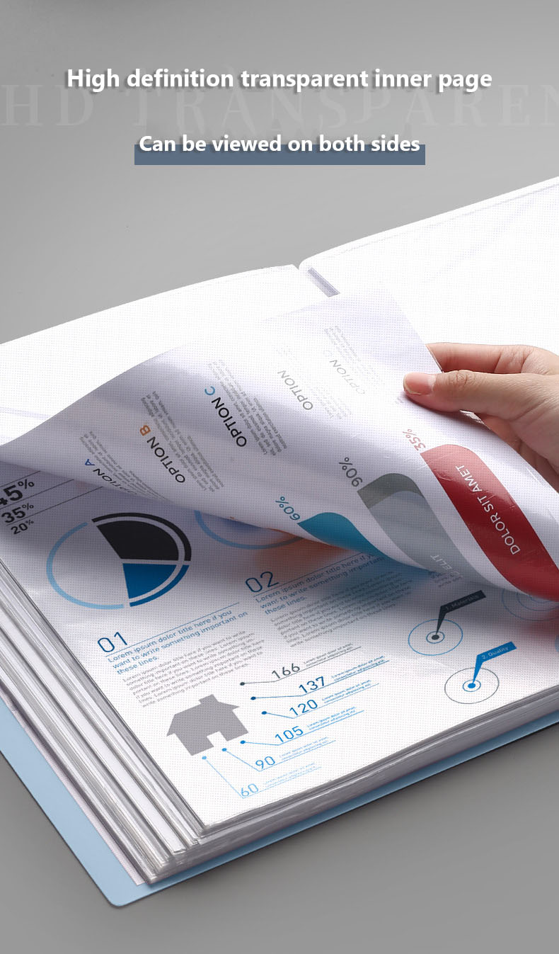 100Pages A4 Clear Book Long Folder File Organizer Long Folder Organizer for Document 23.5x35CM School Supplies