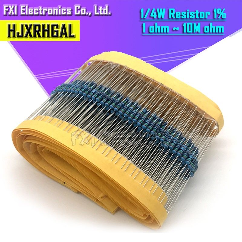 100pcs 1/4W 1R~22M 1% Metal film resistor 100R 220R 1K 1.5K 2.2K 4.7K 10K 22K 47K 100K 100 220 1K5 2K2 4K7 ohm resistance