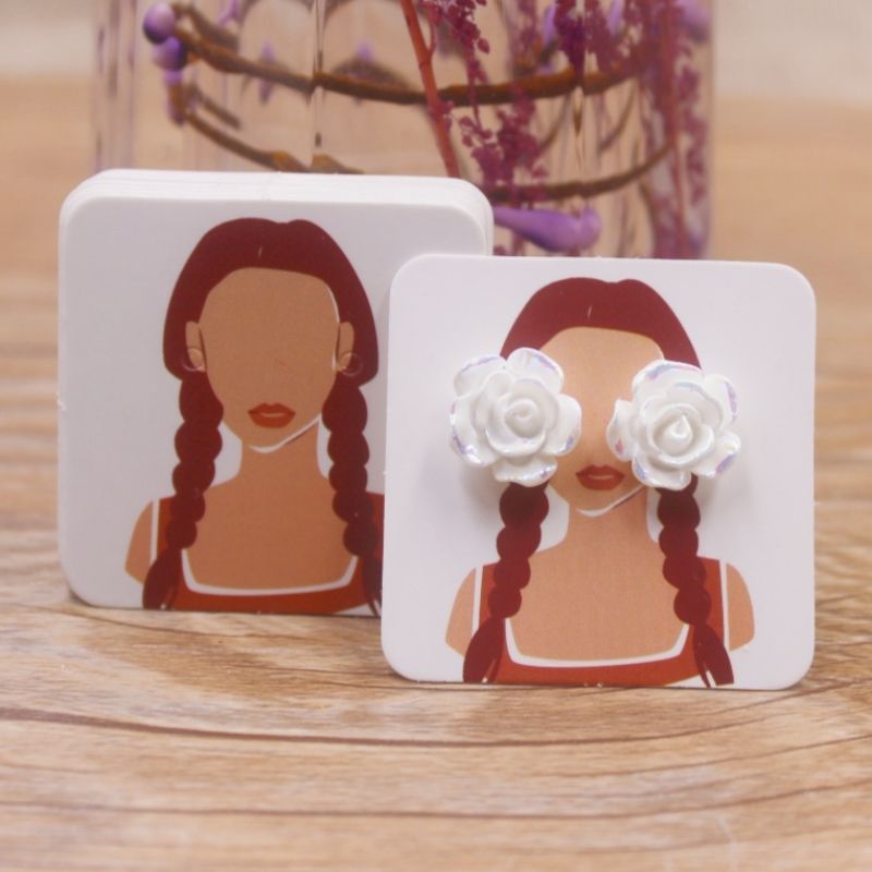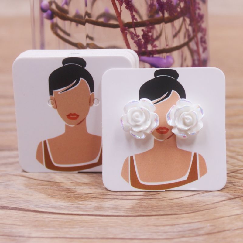 100pcs 4 x4cm new luxury brand jewelry pearl powder paper display earring cards, earrings, earring packaging label cards