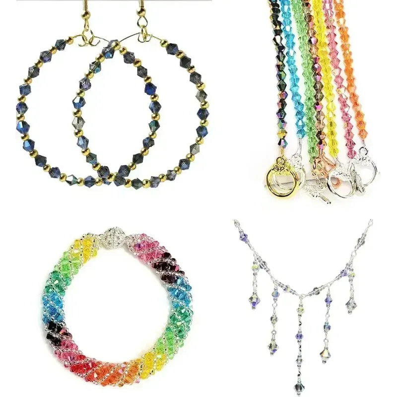 100PCS 4MM Shiny Faceted Austria Crystal Beads Bicone Beads Loose Spacer Beads for Jewelry Making DIY Bracelet Necklace Pendant