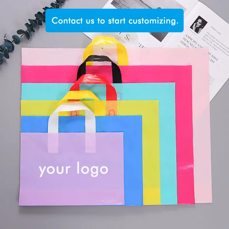 100pcs Custom Logo Colorful Shopping Bags With Handle Plastic Gift Bag Print One Color Logo On Double-sided Free Design Print