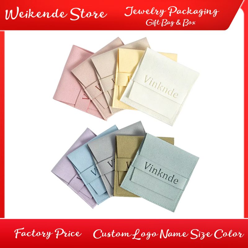 100pcs Custom Logo Name Size Microfiber Gift Bags 8X8cm Jewelry Organizer Earrings Pouch Wedding Favor Candy Bag Small Business