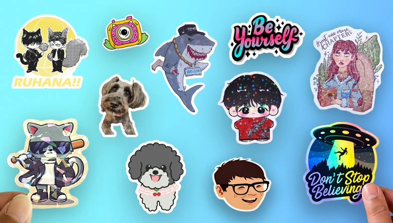 100pcs Custom Stickers PVC Waterproof Die Cut Vinyl Logo Design Brand Laptop Cute Personalized Sticker Glossy Film for Business