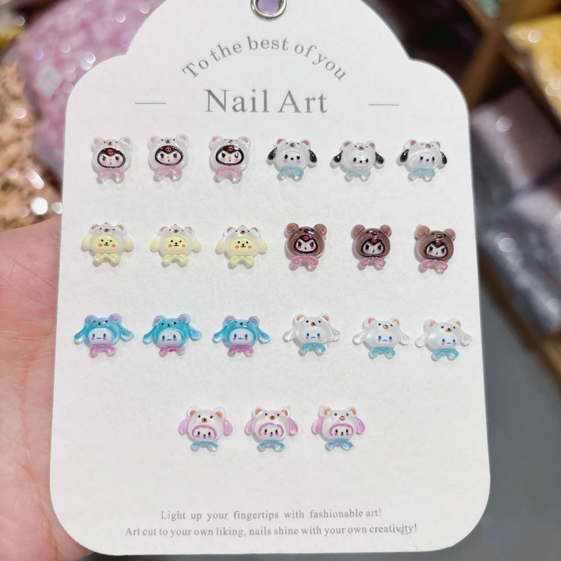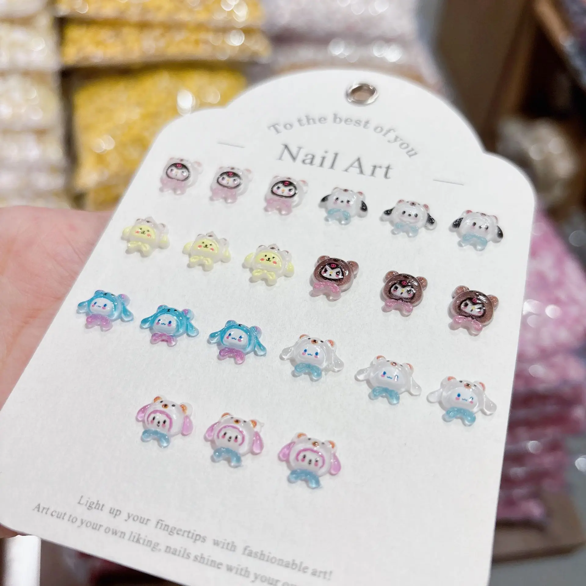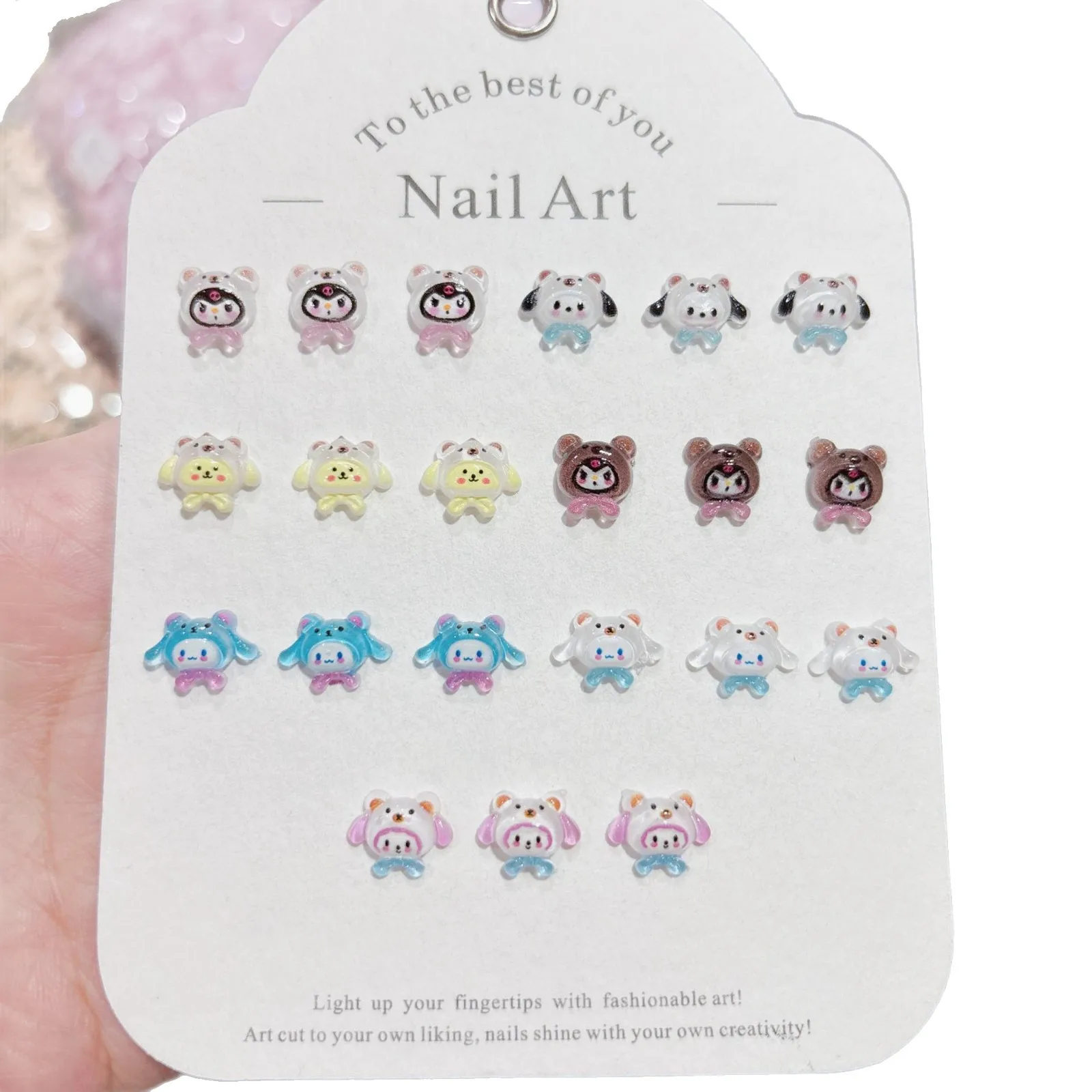 100Pcs Cute Hat Nail Charms - 3D Cinnamoroll & Kuromi Resin Toppers for Kawaii DIY Manicures