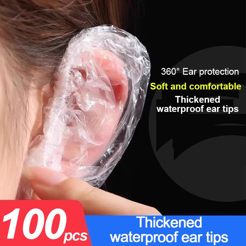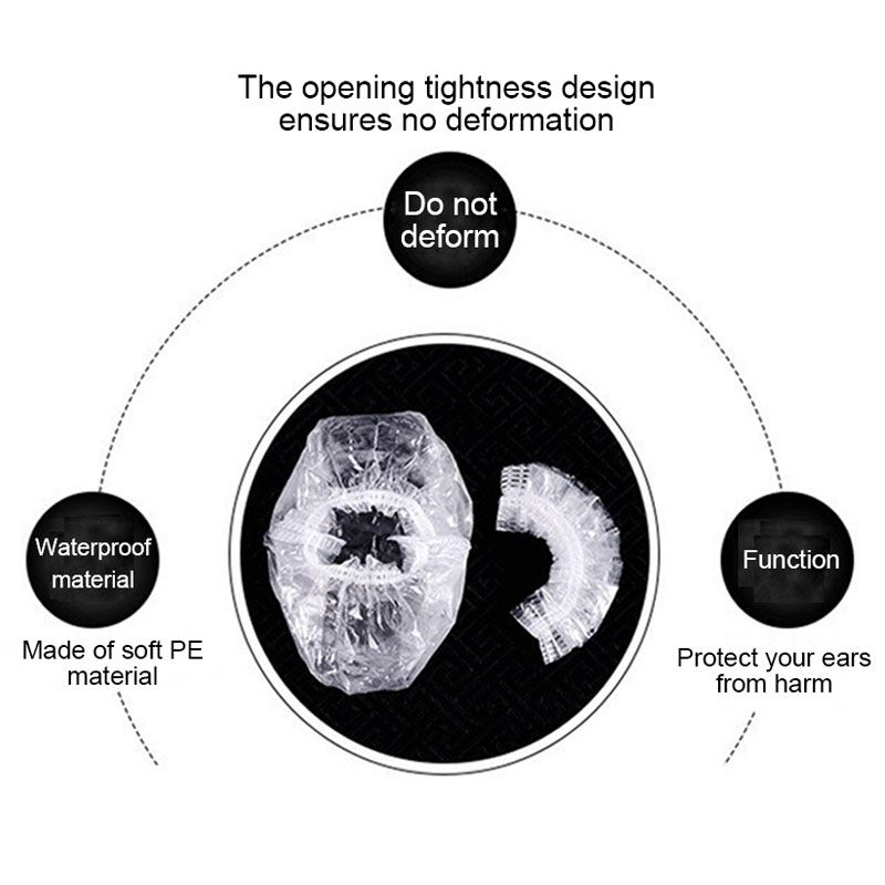 100PCS Disposable Hair Earmuff Dye Elastic Transparent Shower Hair Dye Protection Tool Shield Waterproof Plastic Earpack ZXPJ04