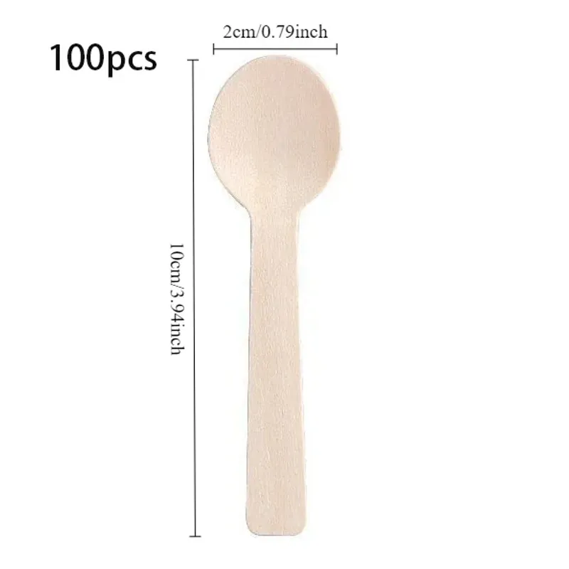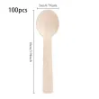 100Pcs Disposable Mini Wooden Spoon Fruit Dessert Forks Spoons Ice Cream Spoon Western Wedding Party Tableware Kitchen Accessory
