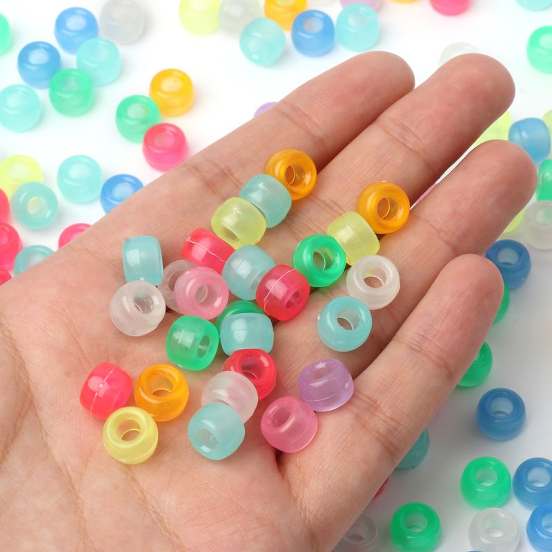 Items Name:100pcs Luminous Pony Beads 6x9mm Acrylic Beads Big Hole Spacer Beads For Diy Craft Jewelry Charms Bracelets Making Hair Supplies