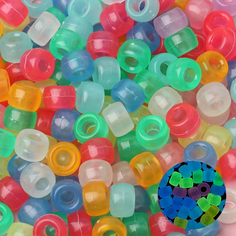 Items Name:100pcs Luminous Pony Beads 6x9mm Acrylic Beads Big Hole Spacer Beads For Diy Craft Jewelry Charms Bracelets Making Hair Supplies