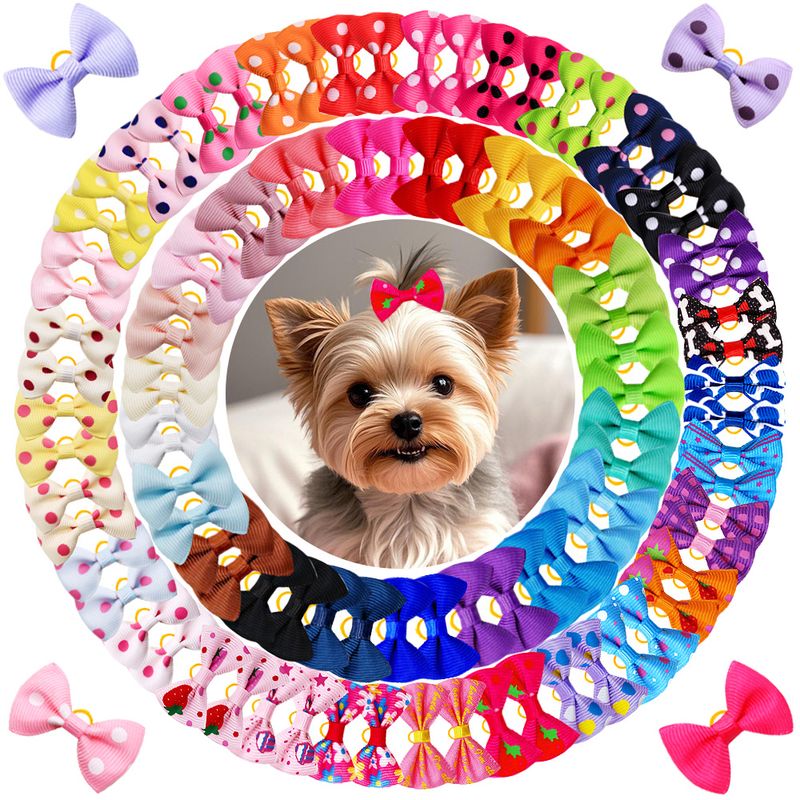 100PCS Multi-style Dog Bows Handmade Pet Hair Accessories For Dogs Bows Cute Solid Polka Dot Print Pet Dog Supplies
