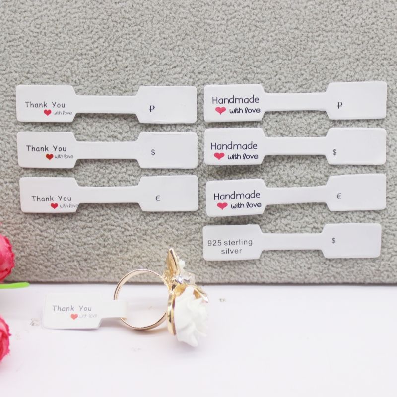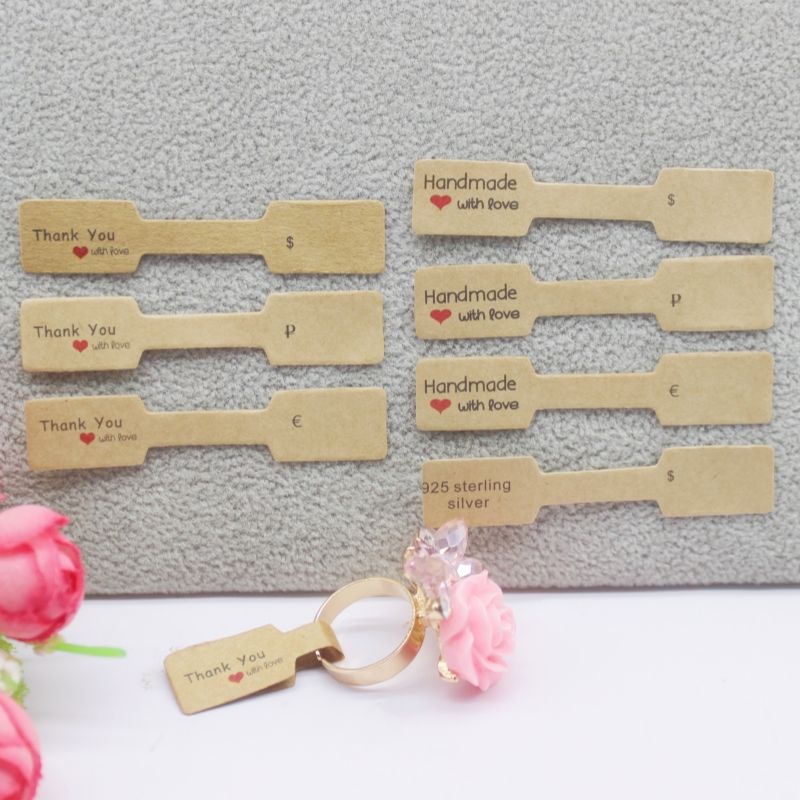 100PCS multi style ring folded labels white/kraft handmade with love ring price labels jewelry tag sticker labels 6*1.2cm