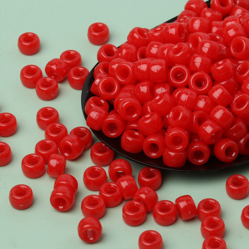 100pcs Red Color 6x9mm Pony Beads Acrylic Loose Beads Diy Craft Jewelry Bracelets Making Hair Supplies
