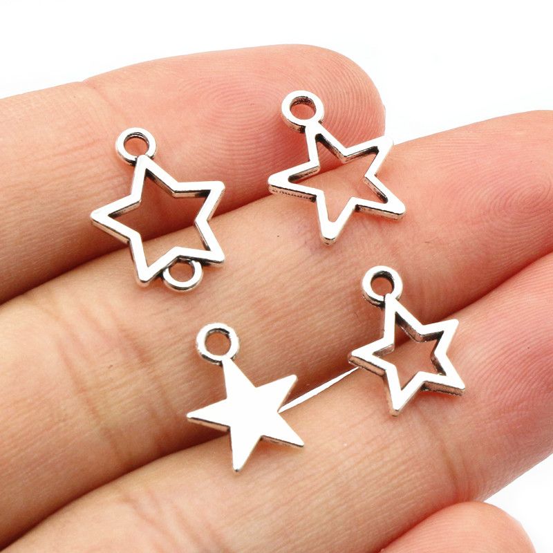 100pcs Small Star Charms Pendant Antique Silver Color Alloy Metal DIY Jewelry Making Accessories for Earrings Bracelet Necklace