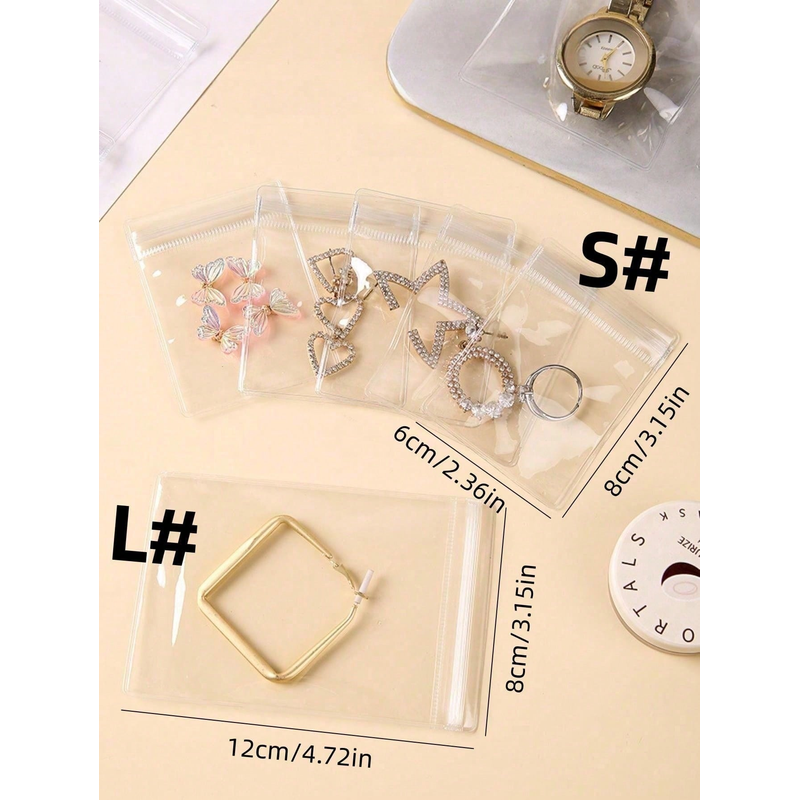 100pcs Thick Self-Sealing Transparent Pvc Jewelry Pouches For Earrings, Bracelets,Necklaces Packaging And Anti-Oxidation Storage