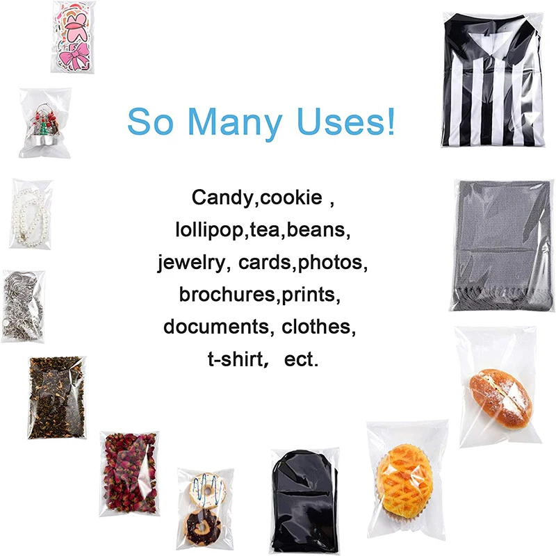Material: these reusable self adhesive cellophane bags are made of polypropylene, odorless, non-toxic and eco-friendly material.
