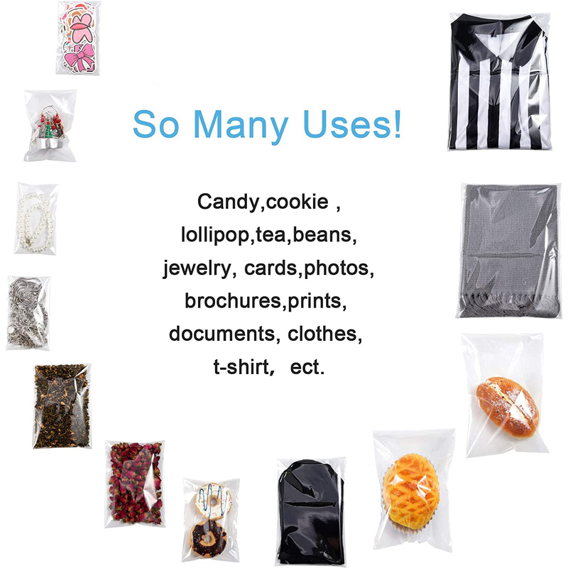 Wide Application: these clear cello bags are durable and reusable, which are suitable for packing candies, desserts, chocolates, little snacks, biscuits, and great for jewelries package, party favors bags, packaging fliers, invitations, postcards, etc. Can protects the contents from dust, bugs, fingerprints, moisture, and mildew.