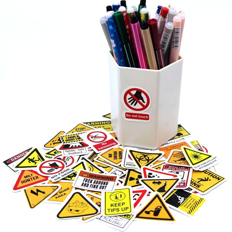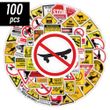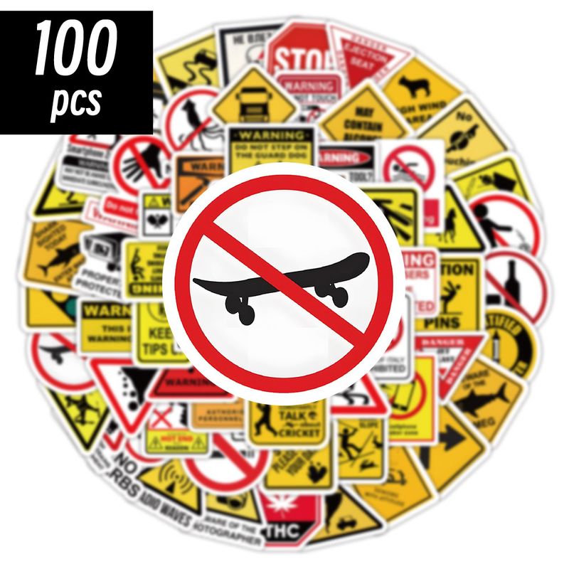 100PCS Warning Pattern Sign Stickers Cool Decorative Decals for Skateboard Motorcycle Suitcase Phone Laptop Helmet Toys