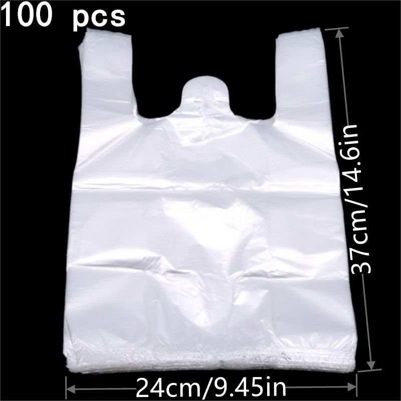 100Pcs White Food Plastic Bags Vest Bag Disposable Supermarket Transparent Takeout Packaging Convenient Shopping Bag