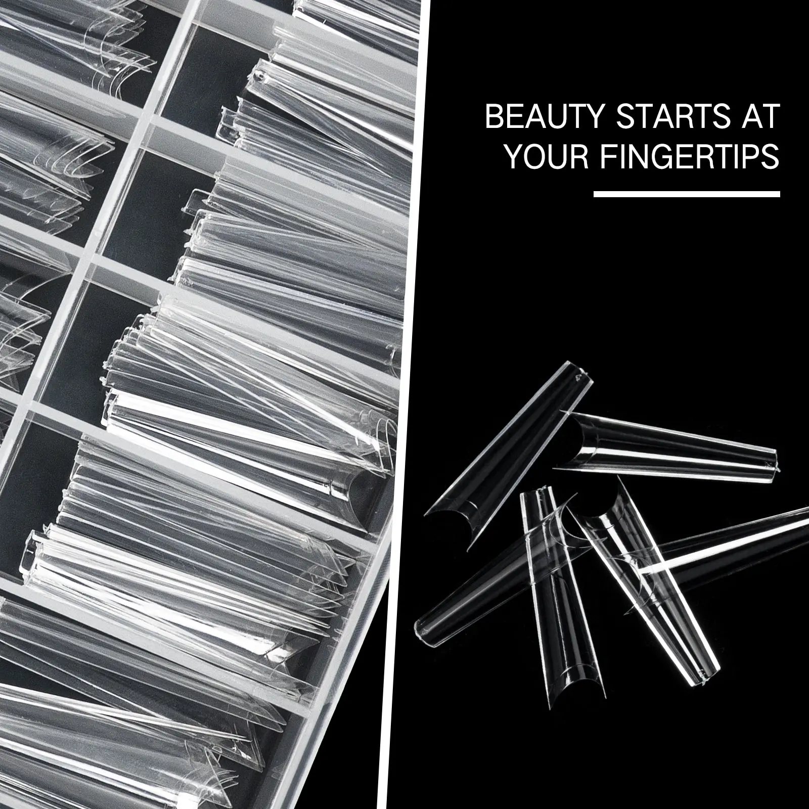 How to useļ¼These clear nail tips with moderate length are super easy to file and easy to apply. Have a nice nail prep first, apply nail glue for nails, then press nails on and press for 10 seconds. Except for regular nail glue for nail tips, you can also use a brush on uv nail glue, or solid nail gel nail glue which requires nail lamp cure for nail adhesion.