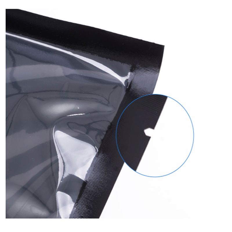 100Pcs/lot Black Nylon Open Top Vacuum Heat Sealing Food Package Bag Tear Notch One Side Clear Storage Bag