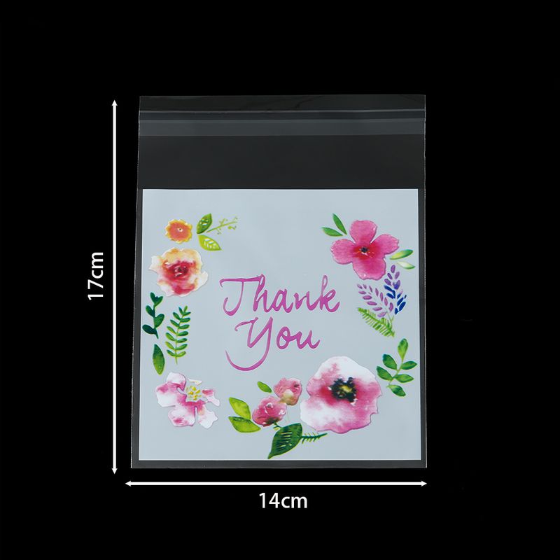100pcs/Lot Plastic Bags Thank you Colorful Flower Self-Adhesive Bags for Homemade Gifts Bag DIY Jewelry Packaging Storage Bag