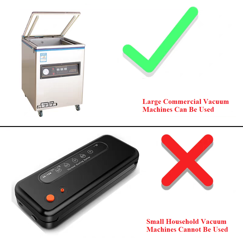 1. In order to achieve the effect of vacuum seal, please check your vacuum sealer can vacuum these glossy bags before you order(some vacuum sealer can only vacuum bags with line).Please use a commercial vacuum machine.